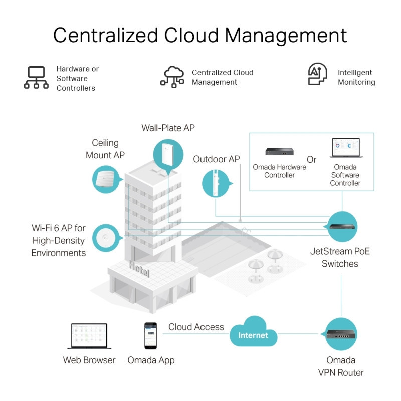 | Centralized Management | • Omada Hardware Controller (OC300) • Omada Hardware Controller (OC200) • Omada Software Controller • Omada Cloud-Based Controller |