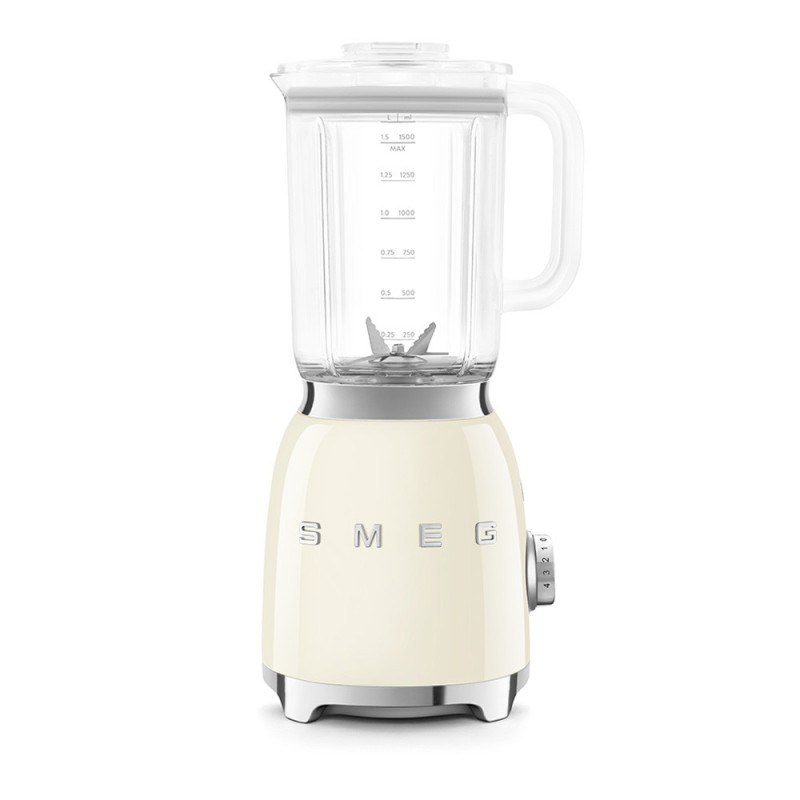 The SMEG Glass Blender has a die-cast aluminum body, a 1.5L BPA-free jar and a powerful 800W motor with four speeds. It has functions for ice crushing, smoothies and a pulse option, as well as a removable stainless steel blade for easy cleaning.
