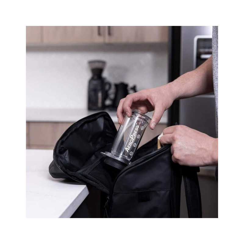 The AeroPress Clear coffee maker is made of clear Tritan material and is dishwasher safe. It is manually operated, has a capacity of 250 ml, and is designed for use with ground coffee.
