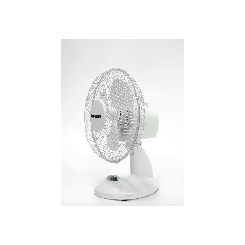 The Ravanson WT-1023 table fan has two speed settings and a diameter of 27 cm with three blades. It has overheating protection, is made of plastic and weighs 1.2 kg.