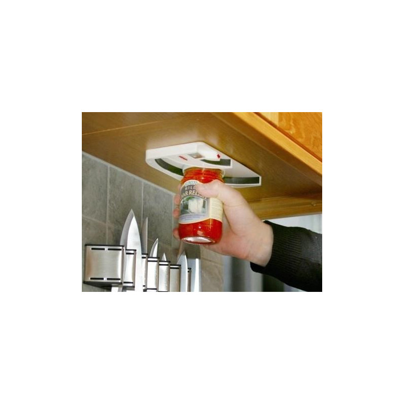 Open jars and bottles easily with our under-cabinet holder, which fits perfectly in any kitchen and ensures convenient use.