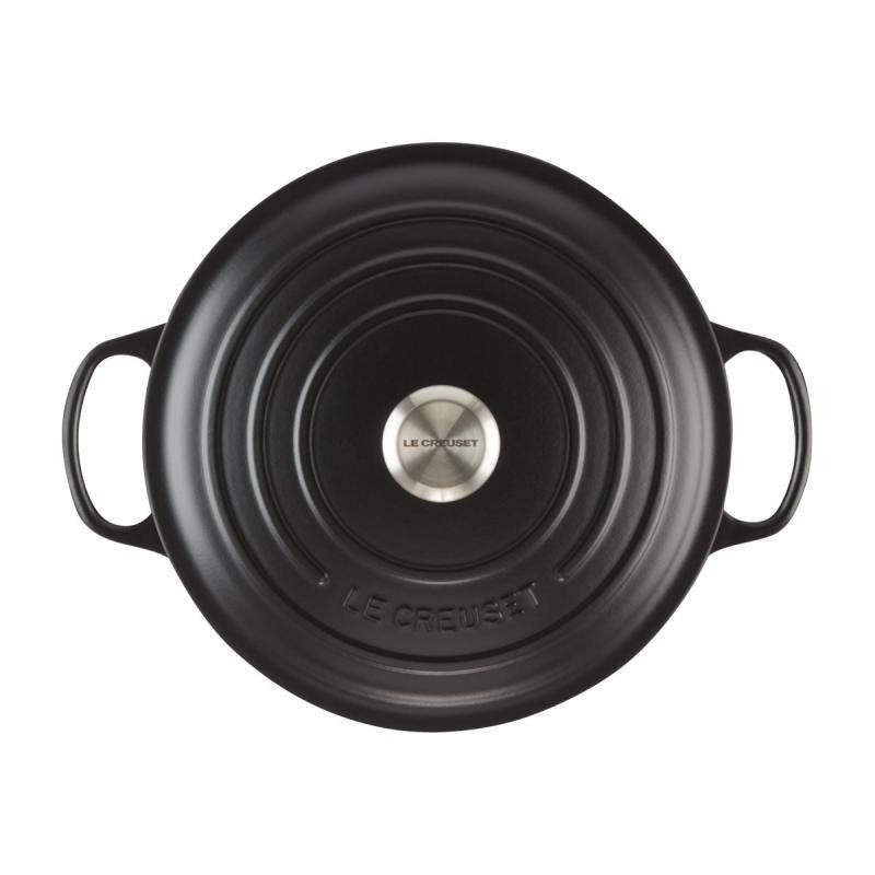 The Le Creuset Signature Bakeware is a versatile cast iron pot for braising, baking and oven cooking. It features a durable enamel interior for easy cleaning and a tight-fitting lid that seals in moisture and enhances flavor.