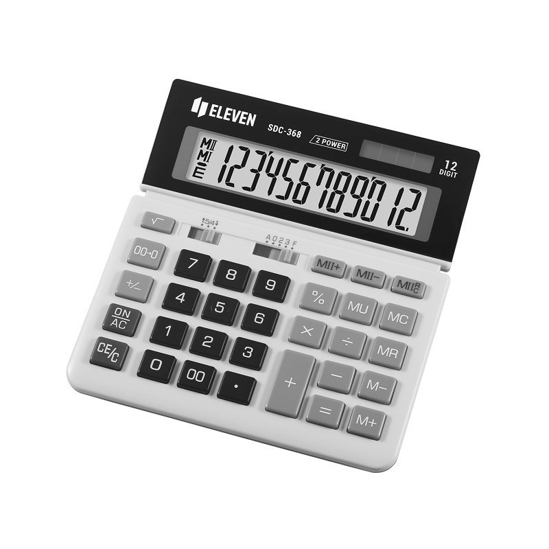 The Eleven SDC-368 office calculator features a compact design and a 12-digit display. It operates on both battery and solar power, ensuring convenience in a variety of lighting conditions.