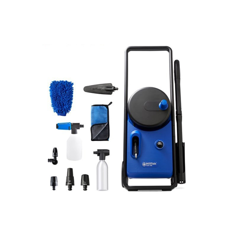 The Nilfisk Core 140-6 is a powerful electric high-pressure washer that reaches pressures of up to 140 bar and a flow rate of 474 liters per hour, ideal for car washing and other cleaning tasks.
