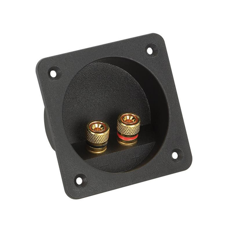 Description: The 2-pin speaker terminal plug has gold-plated connectors, a diameter of 105 mm and a required hole diameter of 76 mm.