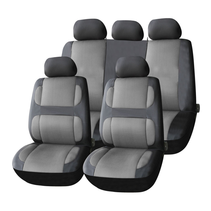 This 9-piece set includes covers for the two front seats, a split rear seat, and a complete set of headrests. Universal fit for most passenger car models.