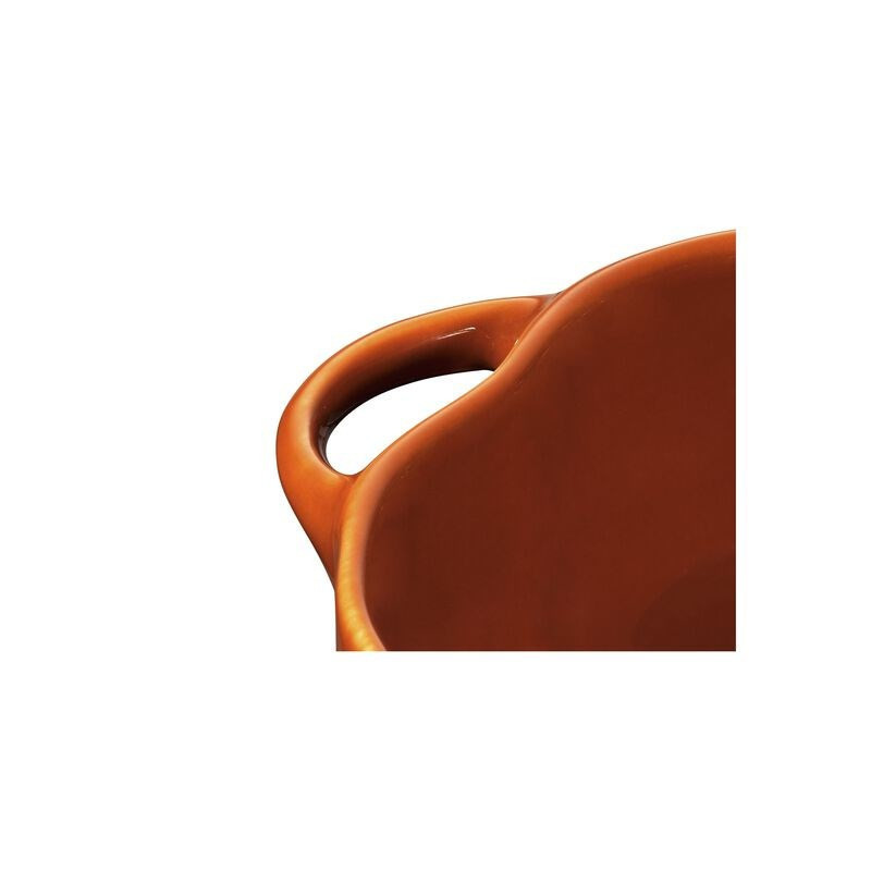 The ZWILLING wavy round ceramic pot has a capacity of 0.501 L and is orange in color. It is oven, microwave, freezer and dishwasher safe, has a non-stick coating and a scratch-resistant design.