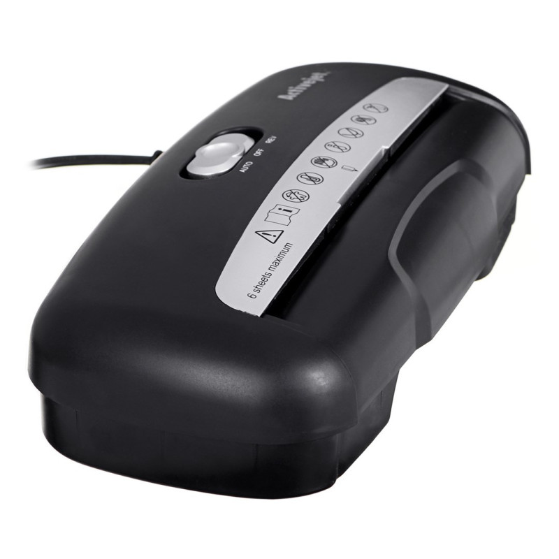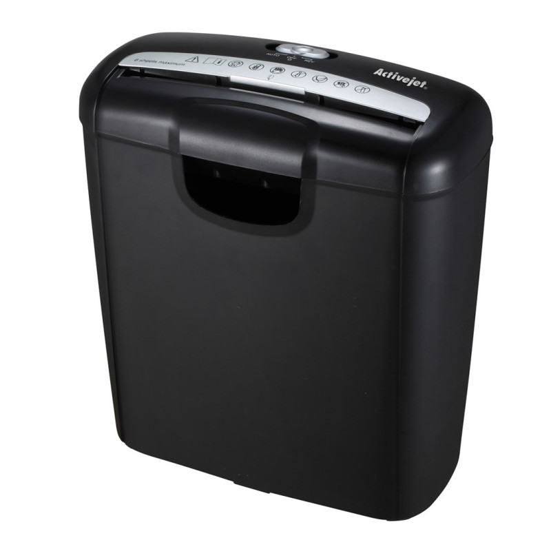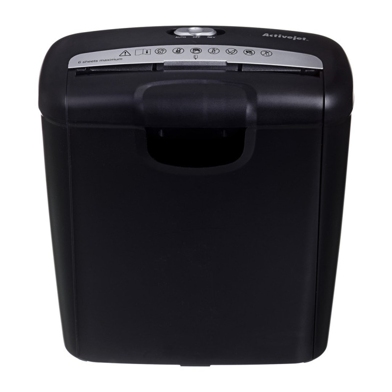 The Activejet ASH-0601S paper shredder has a shredding speed of 3000 mm/min and can shred up to 6 sheets at a time. It has a 10 L capacity basket, a reverse function and can shred credit cards, with a security level of P-1.
