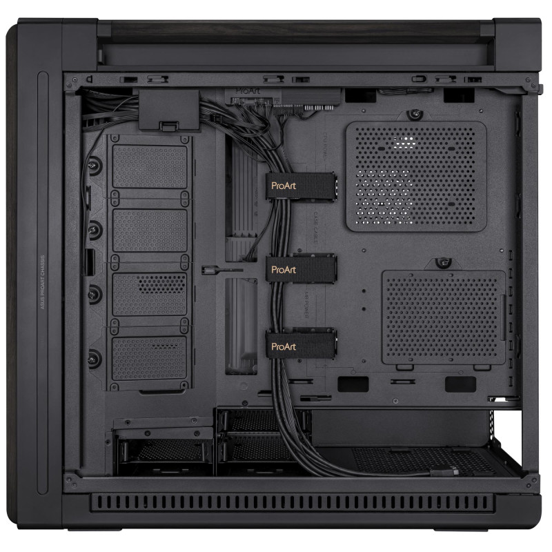 | Summary | ASUS ProArt PA602 Wood Edition. Form factor: Midi Tower, Type: PC, Product colour: Black. Front fans installed: 2x 200 mm, Front fans diameters supported: 200 mm, Rear fans installed: 1x 140 mm. Supported HDD sizes: 2.5,3.5". Width: 560 mm, Depth: 245 mm, Height: 593 mm. Package width: 370 mm, Package depth: 670 mm, Package height: 735 mm |