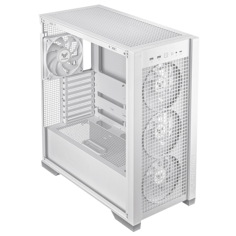 TUF Gaming GT302 ARGB features an optimized square-type mesh front panel, ensuring unobstructed airflow and great porosity engineered to maximize airflow efficiency.