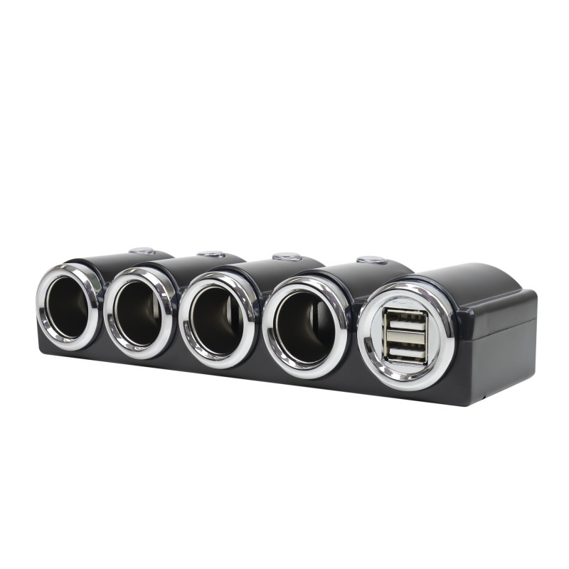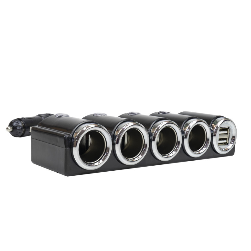Car lighter splitter with 4 12V / 24V outputs and 2 USB ports.