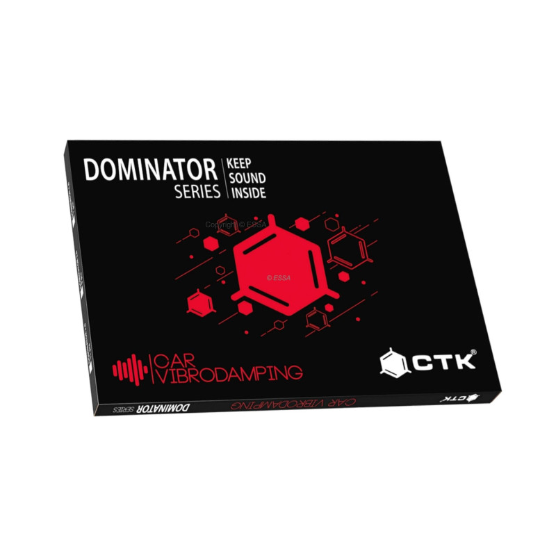 Produkt jest przeznaczony do zastosowań w najbardziej zaawansowanych instalacjach wyciszających, do wydajnej redukcji wibracji nadwozia i hałasu drogowego oraz w ekstremalnych projektach car audio SPL (Sound Pressure level), które wymagają najwydajniejszych materiałów antywibracyjnych o podwyższonej sztywności. Maty Dominator bardzo dobrze nadają się do redukcji silnych drgań elementów karoserii oraz do dodatkowego usztywniania dużych powierzchni nadwozia (dach, podłoga, boczne blachy, drzwi, itp.). Maty CTK Dominator doskonale sprawdzają się również podczas profesjonalnego przygotowania nadwozia i komór drzwiowych do montażu wysokiej klasy sprzętu car audio SQ (Sound Quality). Te maty gwarantują najwyższą sztywność i stabilność powierzchni komór drzwiowych wraz z powierzchnią nad zaklejonymi otworami technologicznymi. Po użyciu CTK Dominator w wielu przypadkach nie będzie już konieczne stosowanie dodatkowych wzmocnień powierzchni w otworach technologicznych. Maty CTK Dominator są dostępne w trzech grubościach: 2.0 / 3.0 / 4.0 mm. Dokładniejsze zastosowanie każdej grubości jest określone w opisie parametrów (niżej).