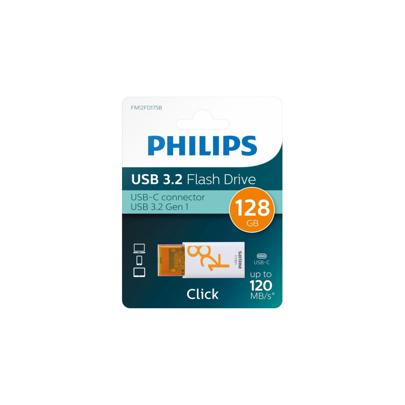 Philips 128GB USB-C 3.2 Gen 1 Click Sunrise Orange FM12FD175B/00