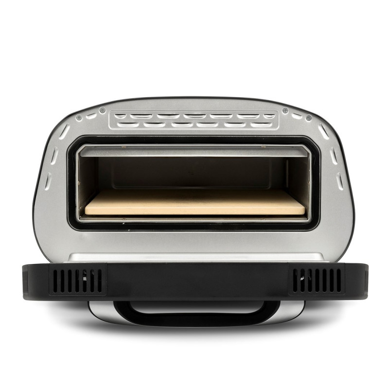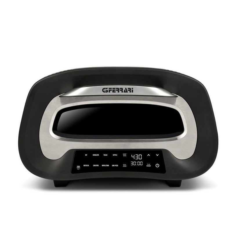 The G3Ferrari pizza oven G10186 has a stone baking surface and can reach temperatures of up to 420 °C, baking pizza in just 2 minutes. The oven has a digital display, adjustable thermostat, and comes with accessories such as a pizza cutter and a recipe book.