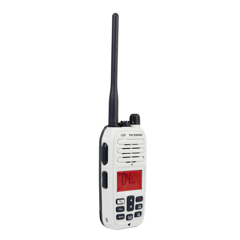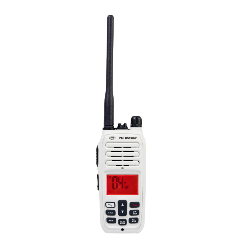 PNI DS890W portable marine radio station, 88 channels, 10 weather channels, adjustable Squelch, Roger Beep, Dual Watch, Scan, Call, NRC, 1800mAh battery, IP67