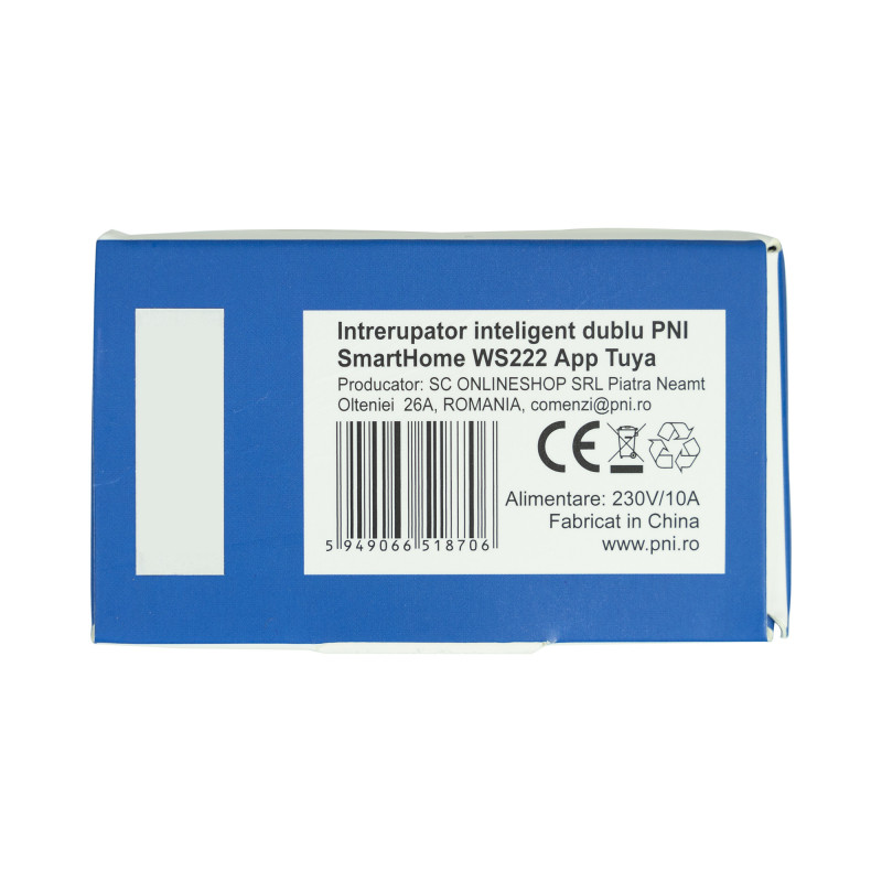 PNI SmartHome WS222 Dual Light Switch for Internet Light Control with Tuya Smart App, Amazon Alexa and Google Home compatible