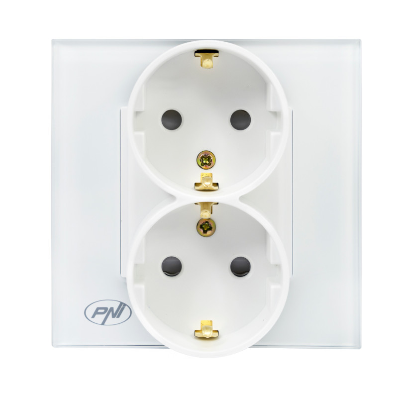 PNI WP222W simple x2 built-in socket, with glass frame, 3000W, white color