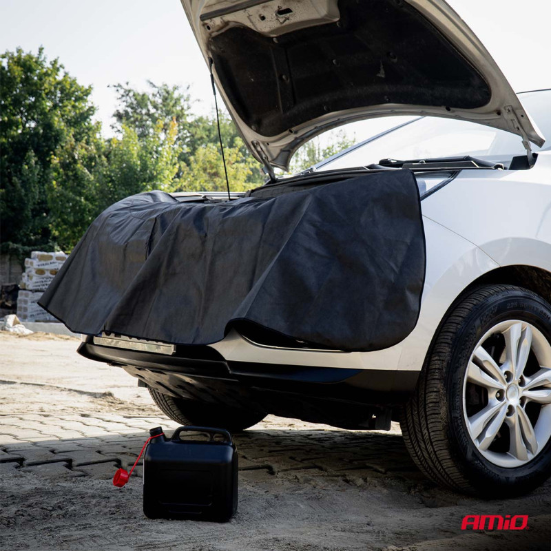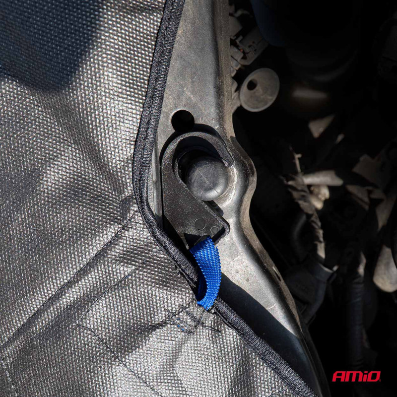 The universal Front service cover protects the car being repaired from scratches and dirt. The cover is oil-resistant, reusable, very easy to install, and safe for paintwork thanks to the use of plastic mounting hooks.