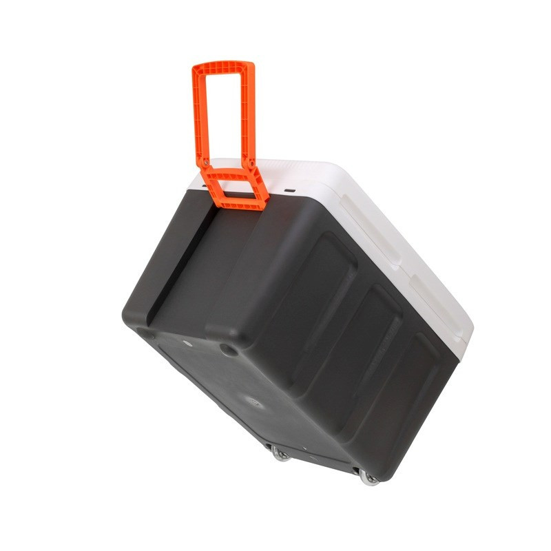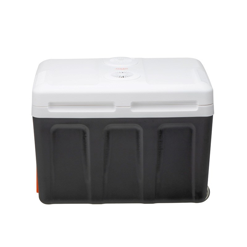 The Adler AD 8090 portable cooler has a capacity of 40 L and is equipped with a heating-cooling switch. It operates on a Peltier cooling system and is equipped with wheels for easy movement.