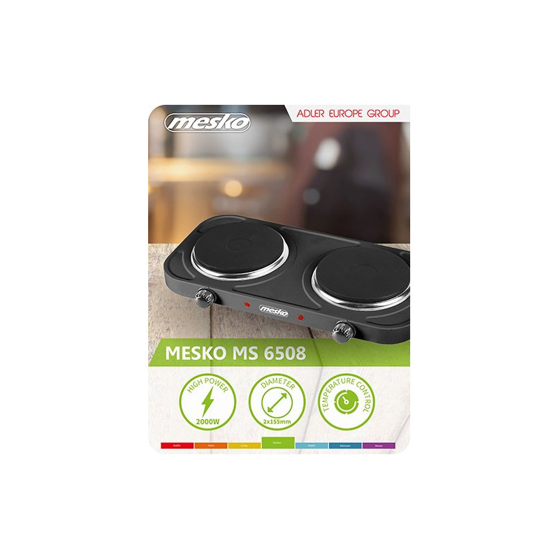 Mesko Home MS 6509 hob Black Countertop Sealed plate 2 zone(s)