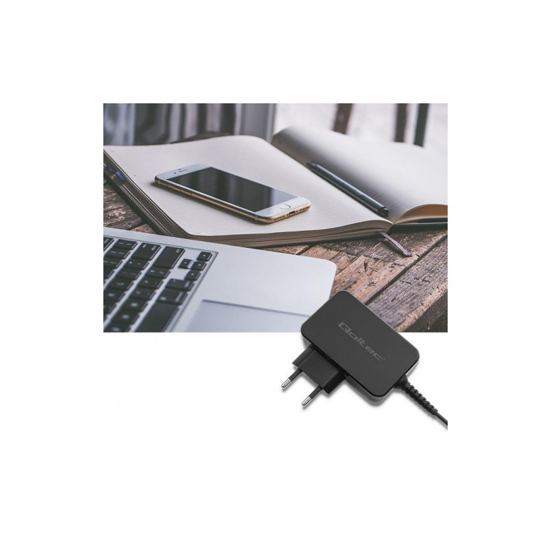 Qoltec 51024 is a compact USB Type-C charger designed for fast charging of laptops and mobile devices. With 65W output power and Power Delivery (PD) protocol, it ensures efficient charging.