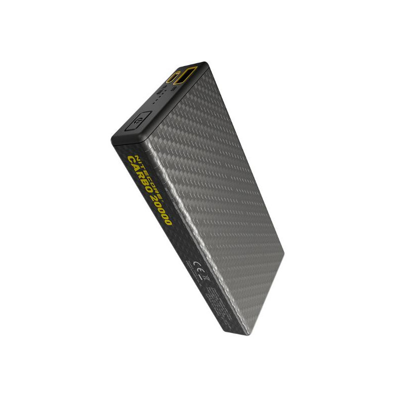 | Summary | Nitecore CARBO 20000. Battery capacity: 20000 mAh, Battery technology: Lithium-Ion (Li-Ion), Fast charging technology: Power Delivery, Battery voltage: 3.85 V. USB Type-A output ports: 1, USB Type-C ports quantity: 1. Total output power: 38 W, Output current: 1.68 A. Product colour: Grey |