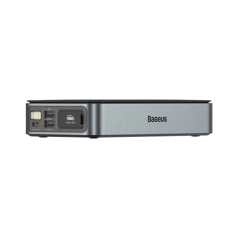 The Baseus Super Energy Pro+ power bank has a capacity of 12,000 mAh and provides 600 A starting current for starting cars. It has two USB Type A ports, one USB Type-C port, an integrated display and a flashlight.