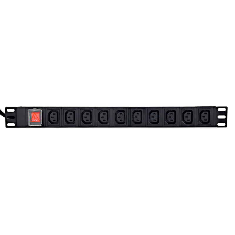 The EnerGenie EG-PDU-10C132C19 is a power distribution unit with 10 C13 outlets and a maximum current of 16 A. It has a 2 m cable and is designed to be mounted in a 1U rack.