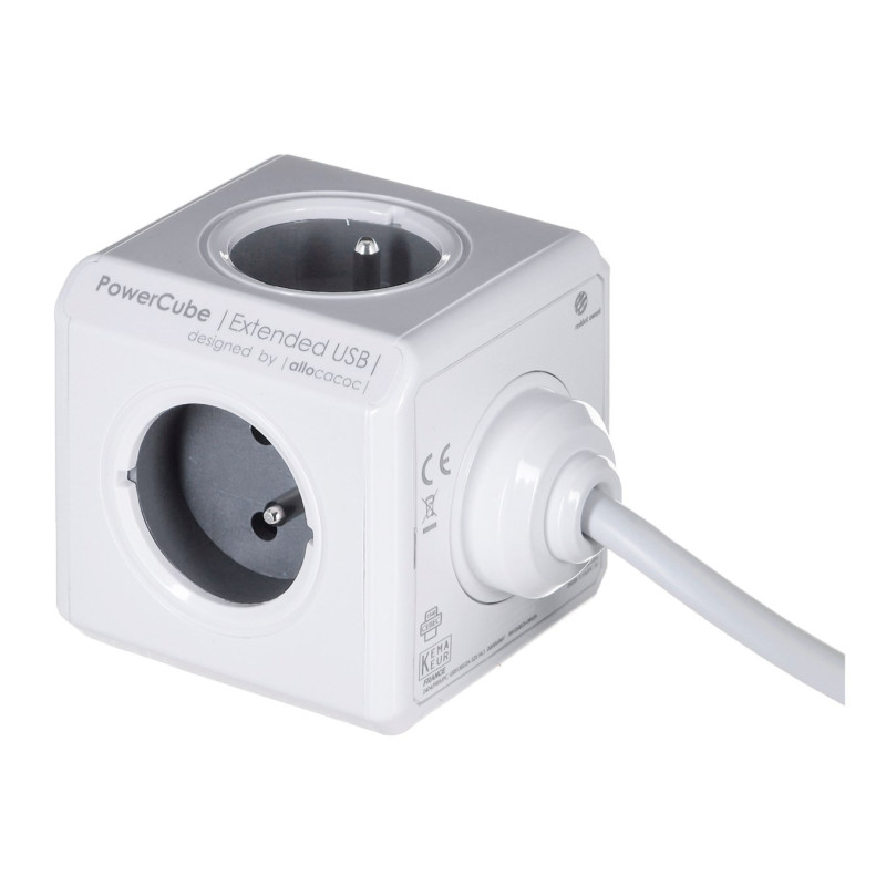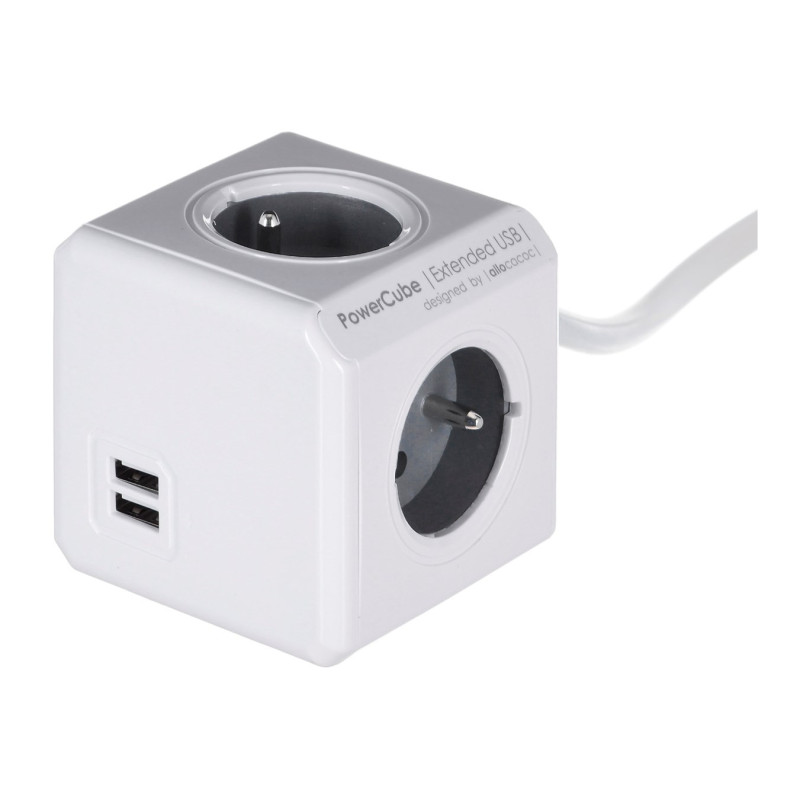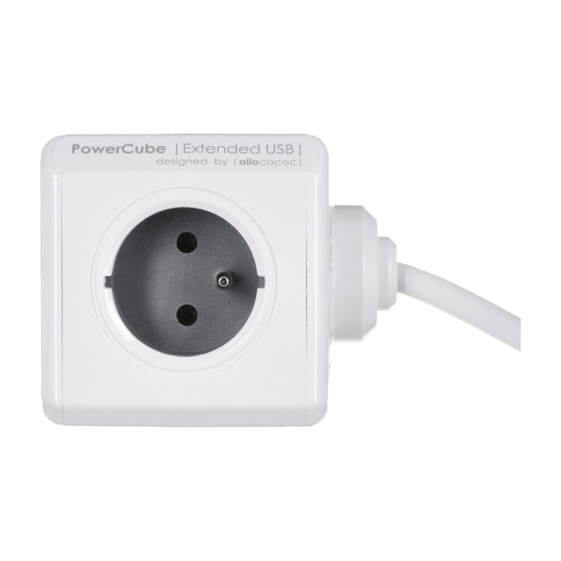 The Allocacoc PowerCube Extended USB E(FR) is a compact power extension solution with 4 AC outlets and 2 USB ports. It features a 3m cable length, a maximum current of 16A and Type E (FR) compatibility.