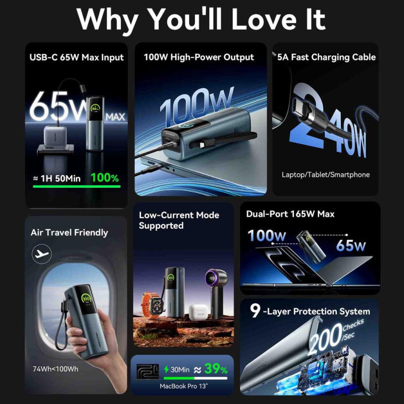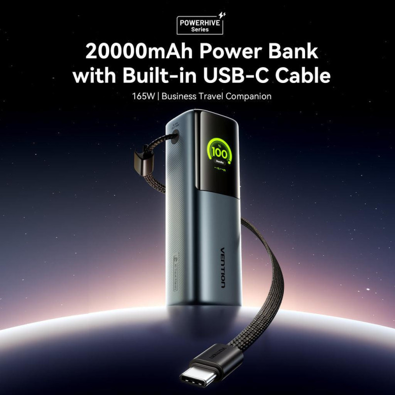 | Summary | Vention FKFH0. Battery capacity: 20000 mAh, Fast charging technology: Power Delivery 3.0, Programmable Power Supply (PPS). USB Type-A output ports: 1, USB Type-C ports quantity: 1. Total output power: 165 W, Output current: 5 A. Product colour: Grey |