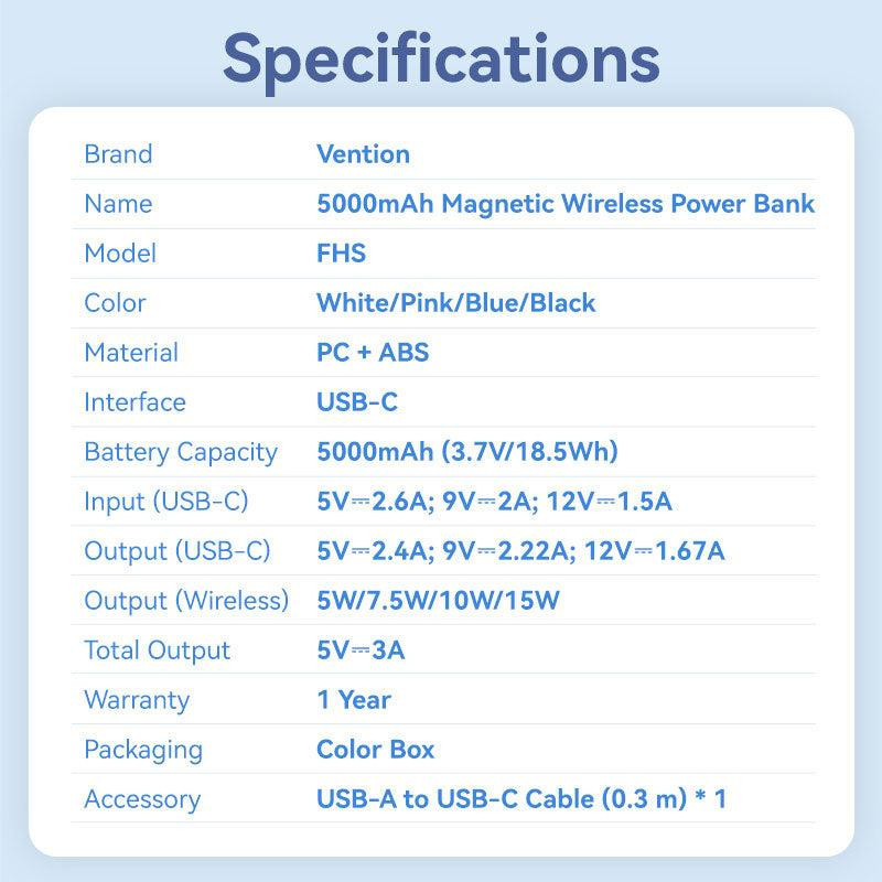 | Vendor Homepage | https://ventiontech.com/products/5000mah-magnetic-wireless-power-bank-usb-c-usb-c-wireless-20w?_pos=1&_psq=FHSL0&_ss=e&_v=1.0&variant=45600963166374 |