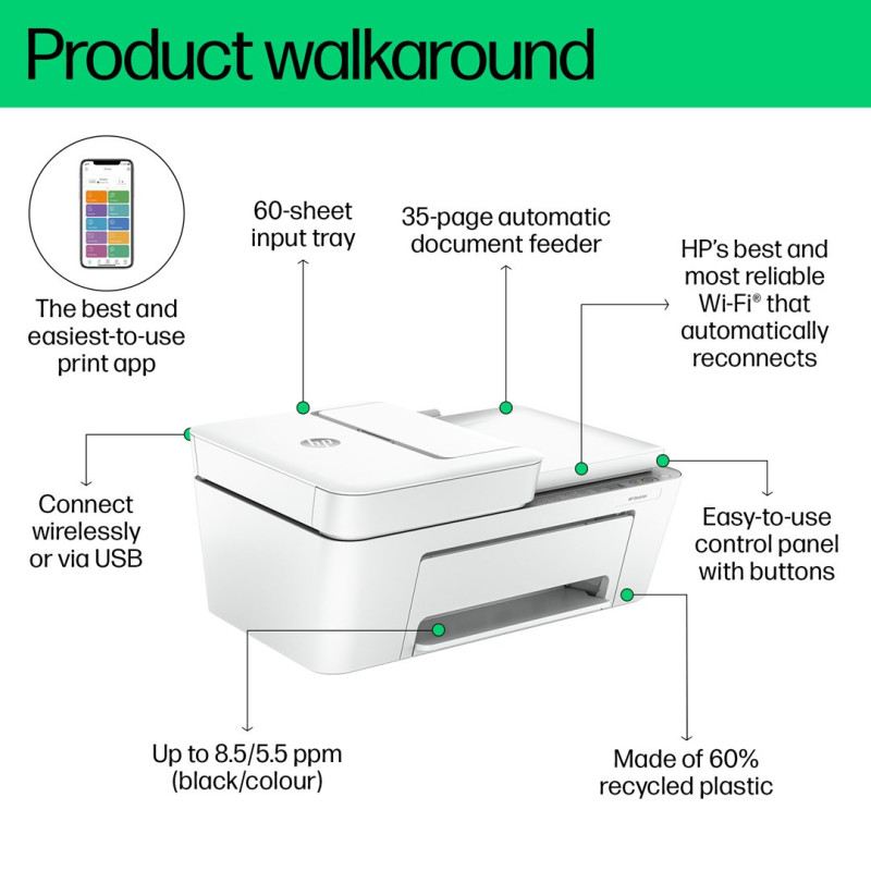 | Bundled software | HP Printer Software, available online |