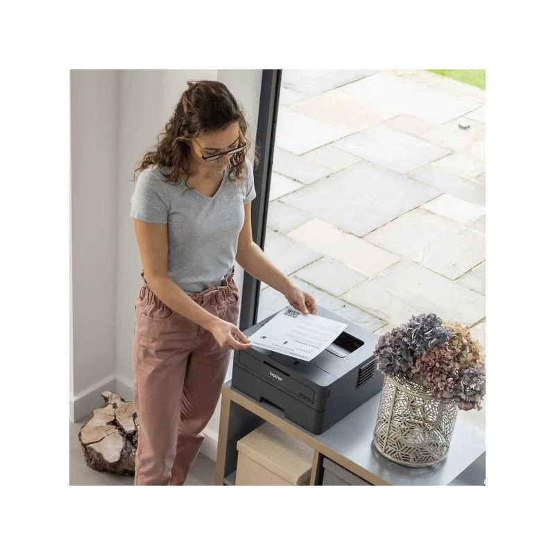 Boost your productivity from anywhere with the conveniently connected Brother HL-L2400DW printer. Whether it's your home or office, this monochrome laser printer is packed with efficiency-enhancing features that save you time with flawless, fast printing, automatic double-sided printing and a large paper tray capacity. Set up your printer is hassle-free, and by downloading the Brother Mobile Connect app, you can print from virtually anywhere, so you can work smarter.
