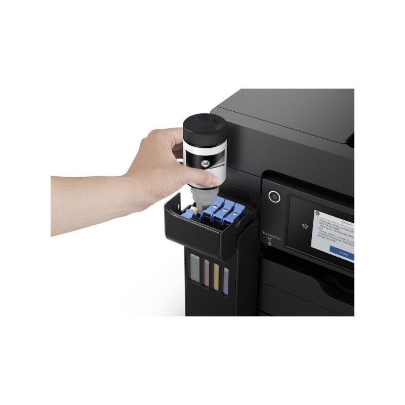 Epson EcoTank L15150 - A3+ multifunction printer with Wi-Fi, ink tank system and fax function. It allows you to print, scan, copy and send faxes, supporting formats larger than A4. EcoTank system ensures a low cost per page and less frequent ink refills. The printer is designed for users who need wider functionality and A3+ format.