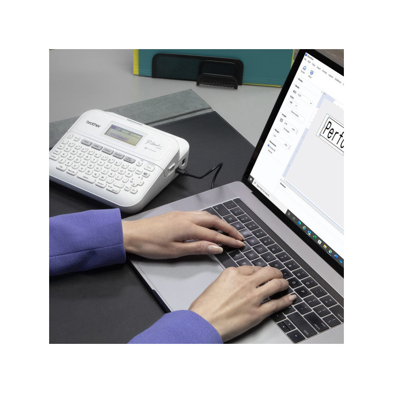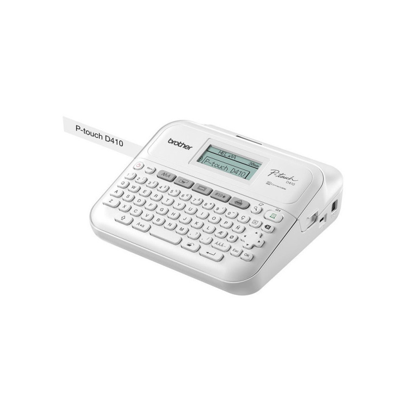 The PT-D410 is a compact, easy-to-use label printer that prints clear, laminated labels to help personalize important files and folders, identify home office equipment and cables, and organize storage boxes.
