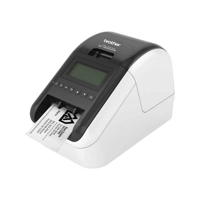 Label printer with Wi-Fi, wired Ethernet, Bluetooth, AirPrint and LCD display. Print labels up to 62 mm wide, in black and red.