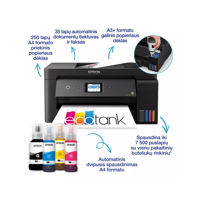 This A3+ multifunction printer features high-capacity ink tanks that last up to three years. It offers print, copy, scan and fax functions, while built-in Wi-Fi connectivity provides convenient wireless use. Ideal for offices that value cost-effective, high-quality printing.