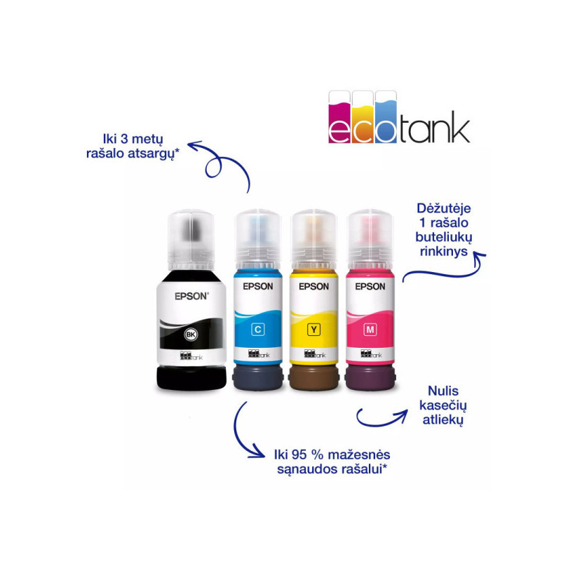 | Complete set | Printer, ink kit (1 x 127ml black, 3 x 70ml cyan, magenta, yellow), power cord, quick setup guide, warranty documents |