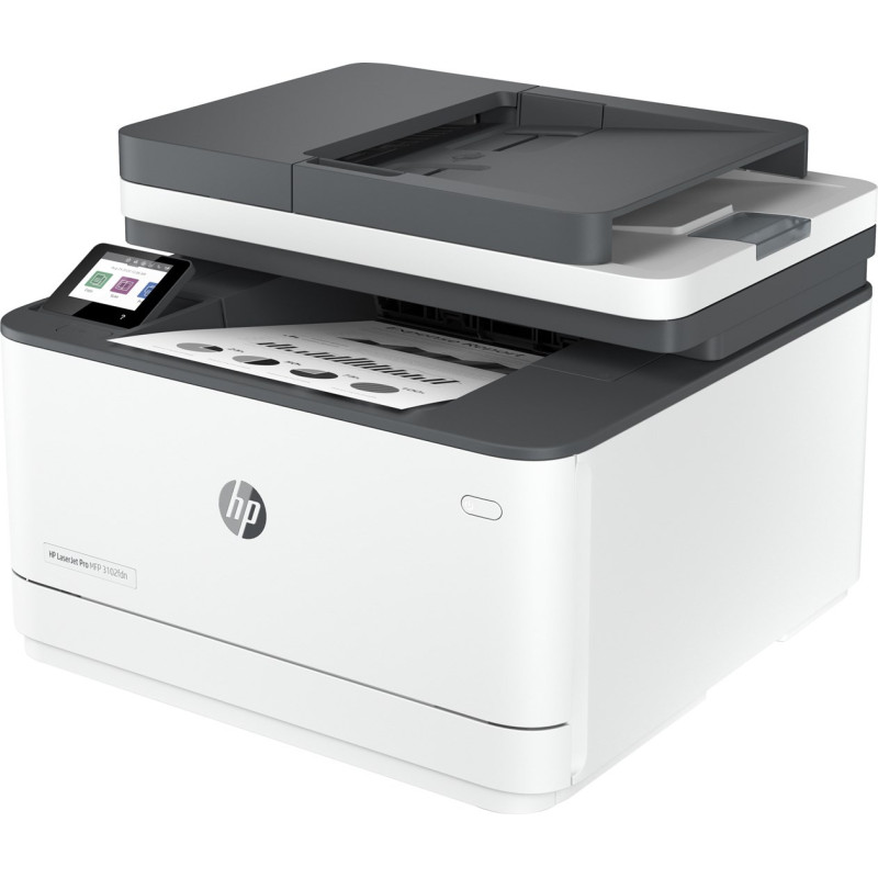 The HP LaserJet Pro MFP 3102fdn printer offers print, copy, and fax capabilities, with a maximum monthly duty cycle of up to 50,000 pages. It features a 2.7-inch color touchscreen, automatic two-sided printing, and supports mobile printing technologies such as Apple AirPrint.