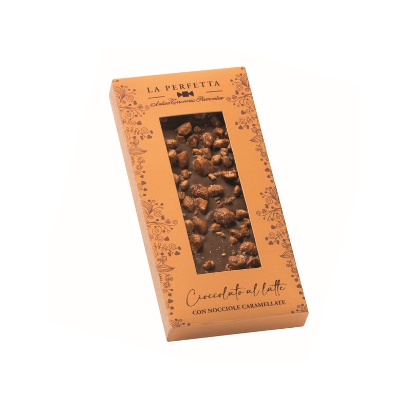 AL LATTE E NOCCIOLE CARAMELLATE - užburiančio skonio itališkas saldumynas gardintas sadžiaisiais trumais ir karamelizuotais lazdyno riešutais aplietas aukščiausios rūšies pienišku šokoladu.