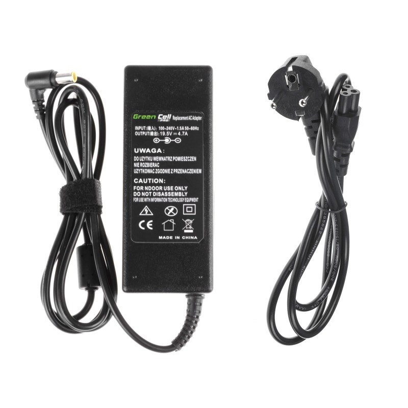 The Green Cell AD14P power adapter delivers 90W of power with 19V and 4.74A. It has protection against overheating, short circuit, and overvoltage, and is compatible with HP laptops.