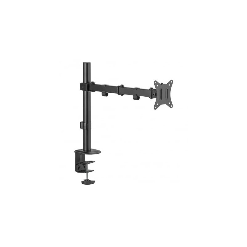 The ART L-15GD monitor stand features a black metal design and manual height adjustment from 160 to 410 mm. It supports screens from 33 cm (13") to 68.6 cm (27") with a maximum load of up to 6.5 kg and is VESA-mountable.