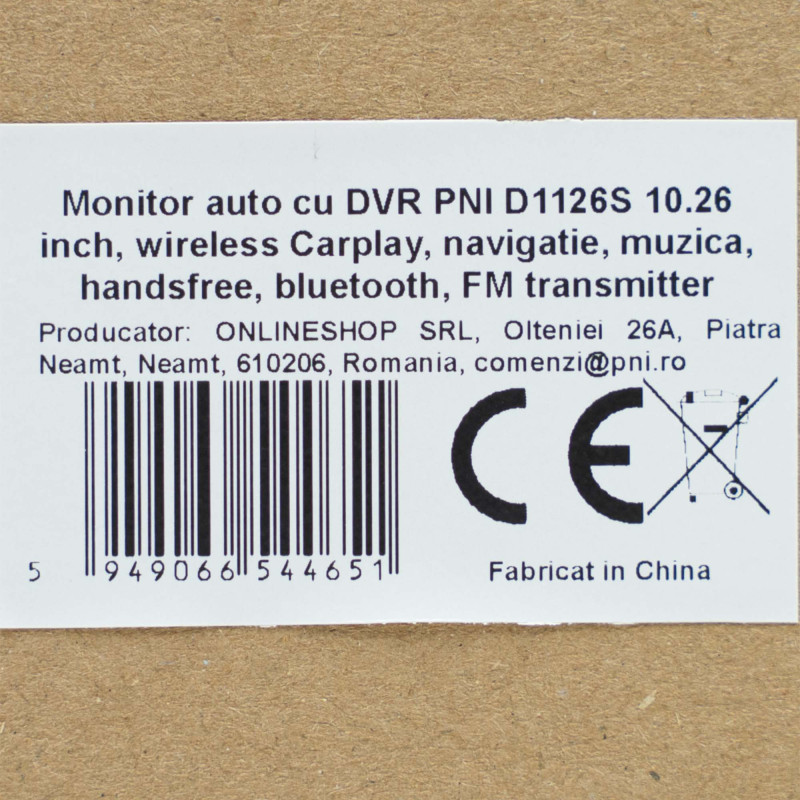 Car monitor PNI L1026 10.26 inch, wireless Carplay, navigation, music, handsfree, bluetooth, FM transmitter