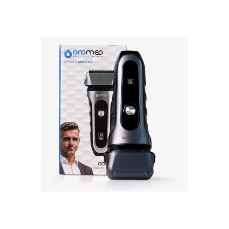 The Oromed Oro-Shaver has a waterproof design with an IPX7 rating and a quick charge time of 1.5 hours. It features three shaving blades, an LED display and a 600 mAh lithium battery.