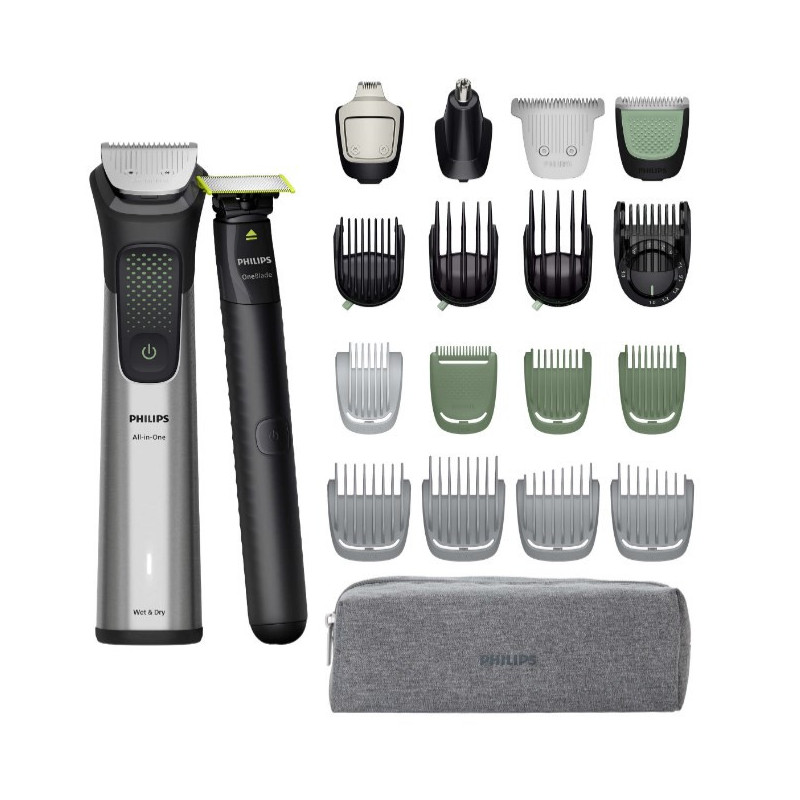 The Philips All-in-One Trimmer 7000 Series MG7921/15 features a quick 5-minute charge time and 120 minutes of run time. It comes with 15 attachments, a self-sharpening blade, and is suitable for both wet and dry use.