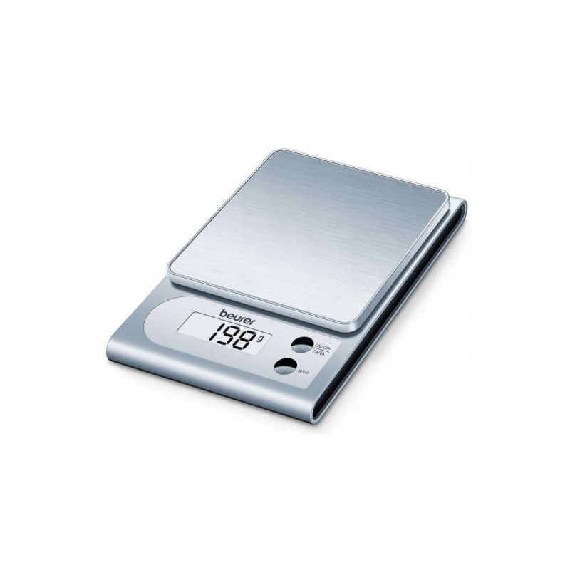 Digital kitchen scale with a maximum capacity of 15 kg and an accuracy of 1 g. It has a touch keypad and a HOLD function that allows you to weigh larger items.
