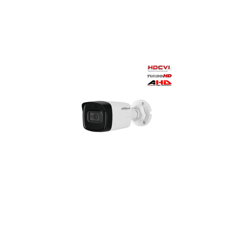 HD kamera HAC-HFW1200TLP-A užtikrina 1080P raišką su 30 kadrų per sekundę greičiu ir 3.6 mm fiksuotu objektyvu, taip pat turi integruotą mikrofoną. Su IP67 apsaugos lygiu, ji veikia esant -40°C iki +60°C temperatūrai ir turi infraraudonųjų spindulių matymo atstumą iki 80 metrų.