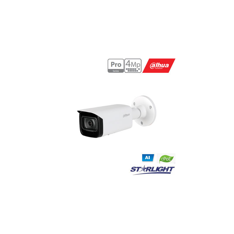 4MP raiška su 2.8 mm fiksuoto židinio objektyvu. Ši kamera pasižymi pažangiomis dirbtinio intelekto funkcijomis, įvairiais vaizdo suspaudimo formatais ir IP67 atsparumu oro sąlygoms.