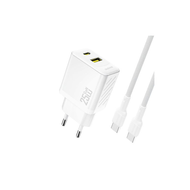 Adapter Dudao Dudao A26TCEU PD QC 25W GaN USB-A USB-C Wall Charger with USB-C Cable White