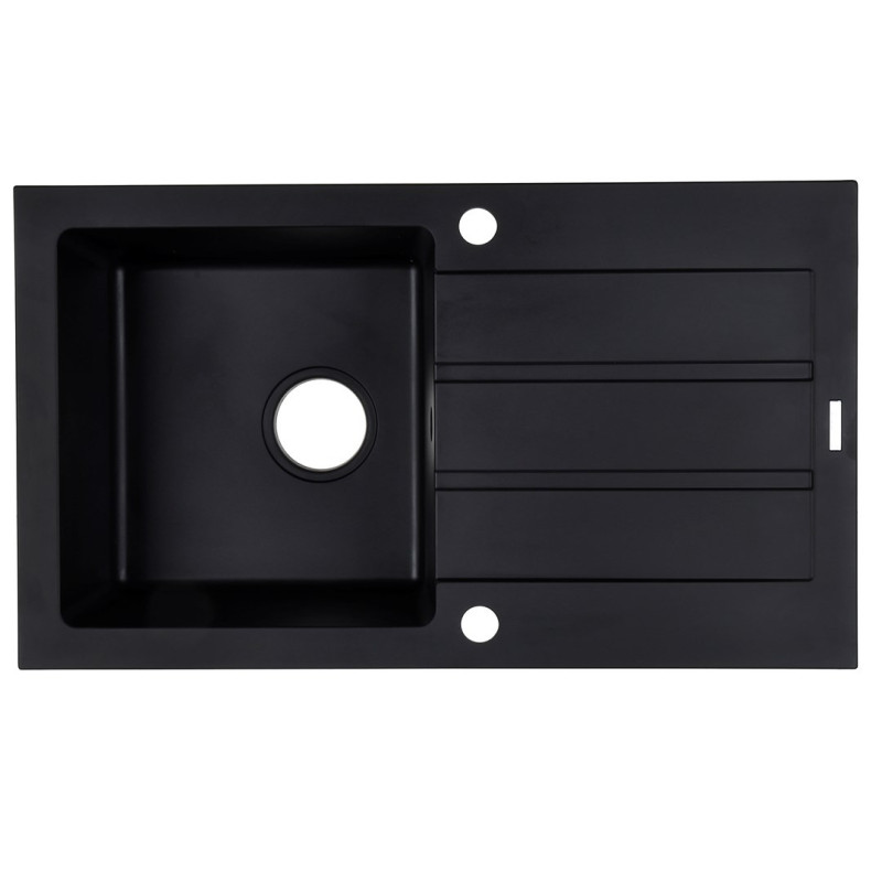 76x44 cm black Pyragranite sink with a single drain hole, ensuring durability and stylish design.